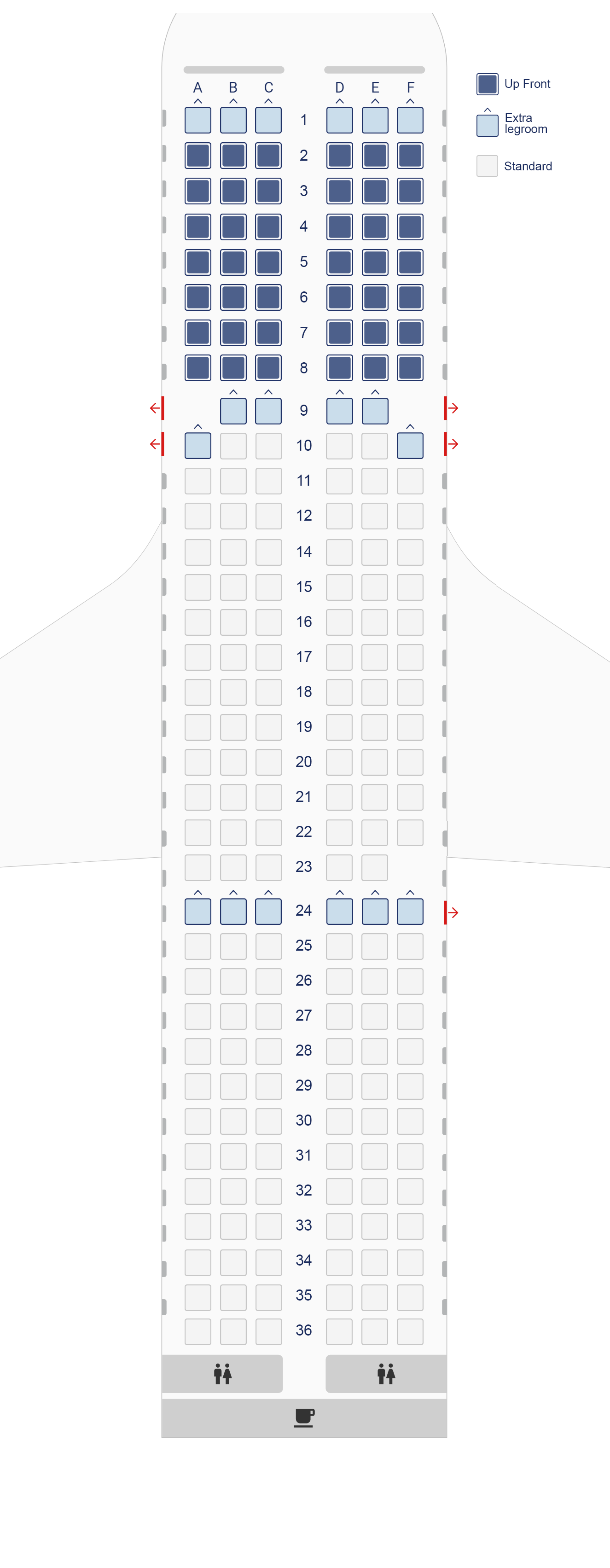 The seat maps are indicative as there may apply differences between aircraft of the same type. The exact seat maps can be displayed during check-in.