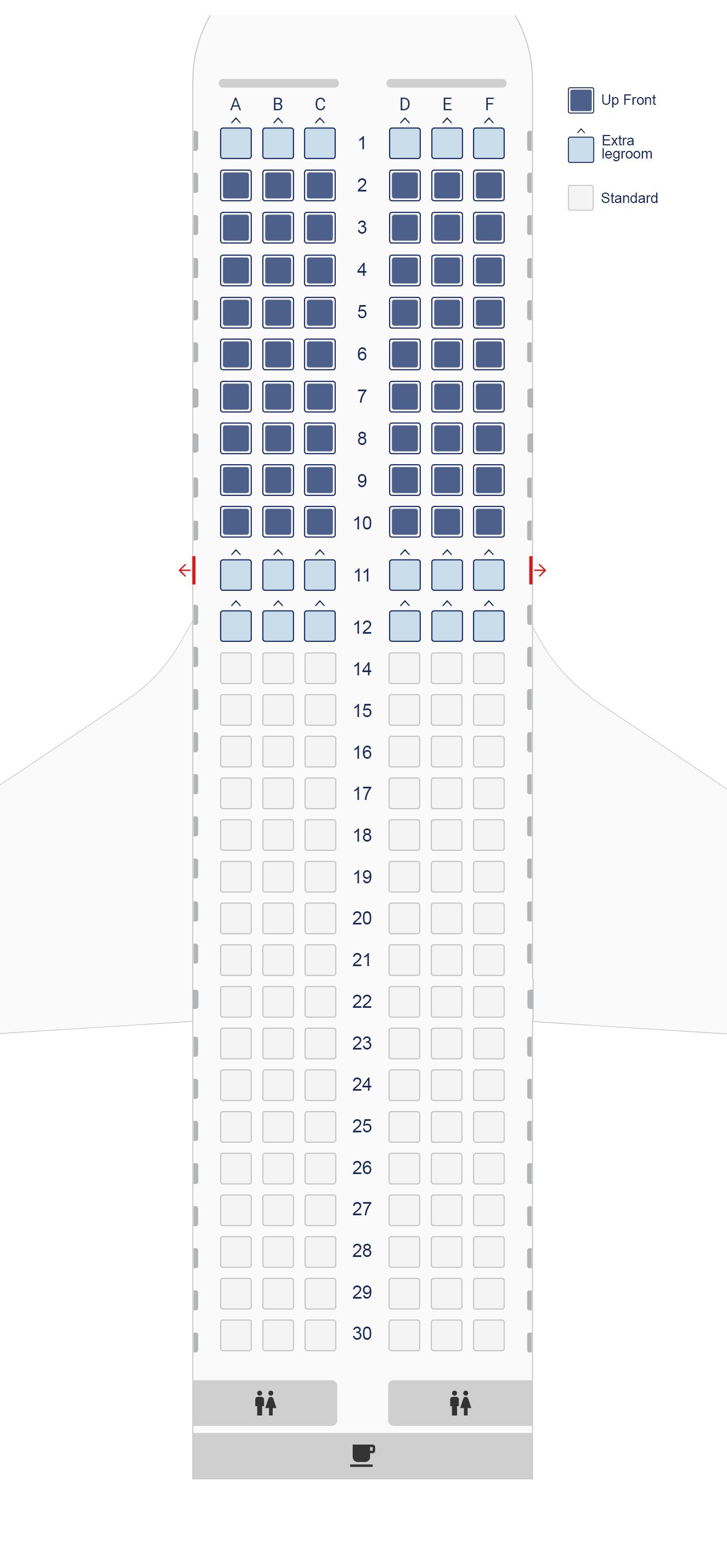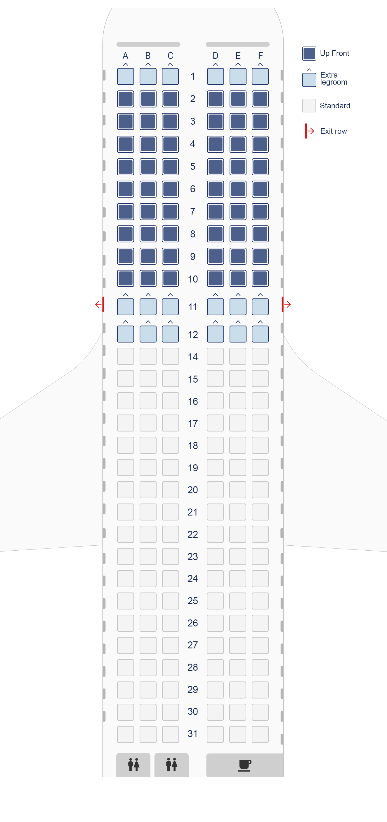 The seat maps are indicative as there may apply differences between aircraft of the same type. The exact seat maps can be displayed during check-in.